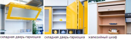 Складные дверцы Дверцы могут не только открываться, но и складываться, или убираться в шкаф — если вместо двери используется жалюзи.